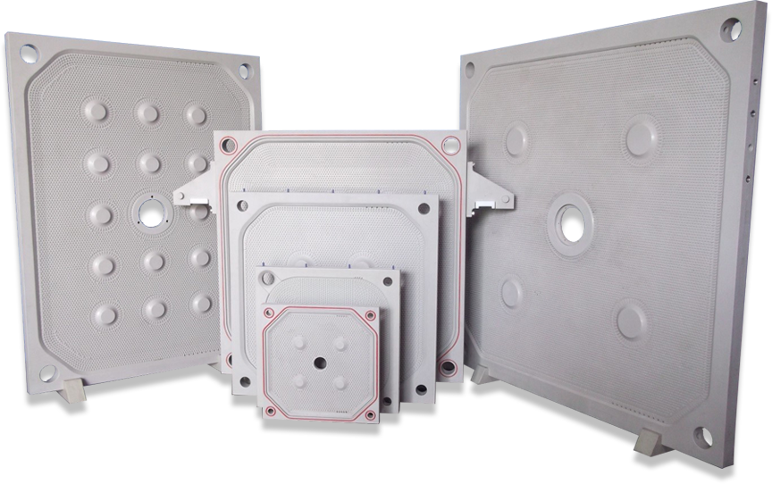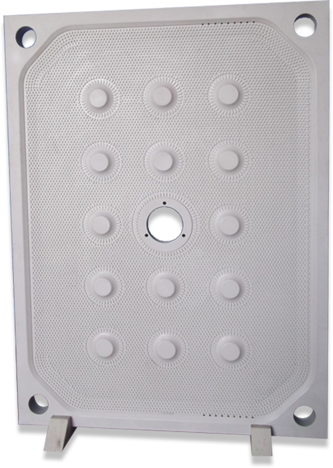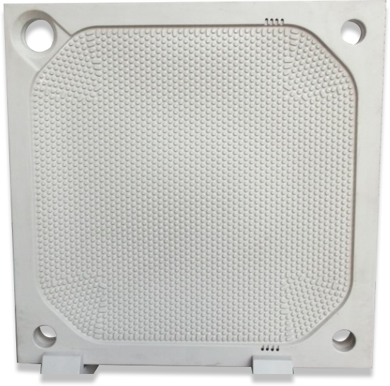 Filter Plate is the central lifeline of the filter press as this is where the filter cloth is laid over and where the actual filtration process happens. Having the right design of filter plates with a rigid construction is of utmost importance. We manufacture all the filter plates in-house from virgin Polypropylene raw material with the chemistry adapting to the process requirements. There is an in-house R & D team which is constantly working on improving the design and thus efficiency of the filtration process through the plates.