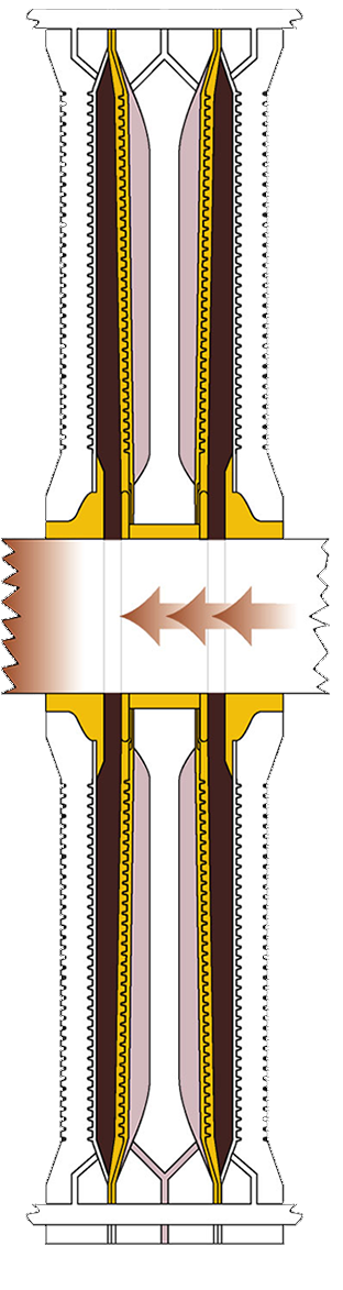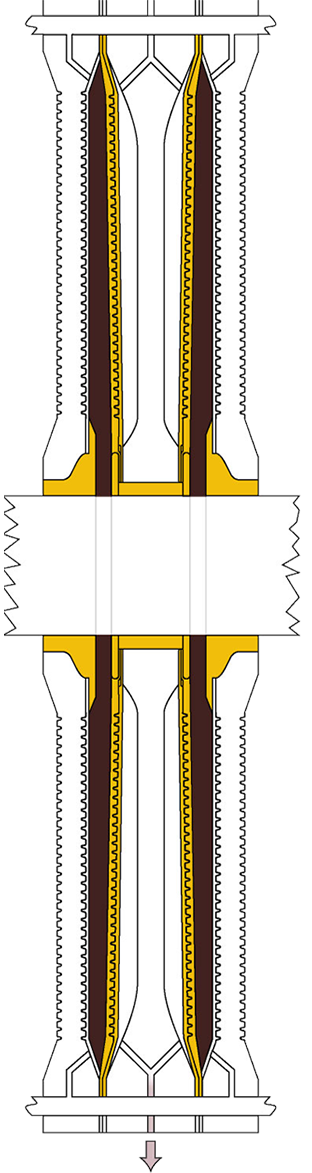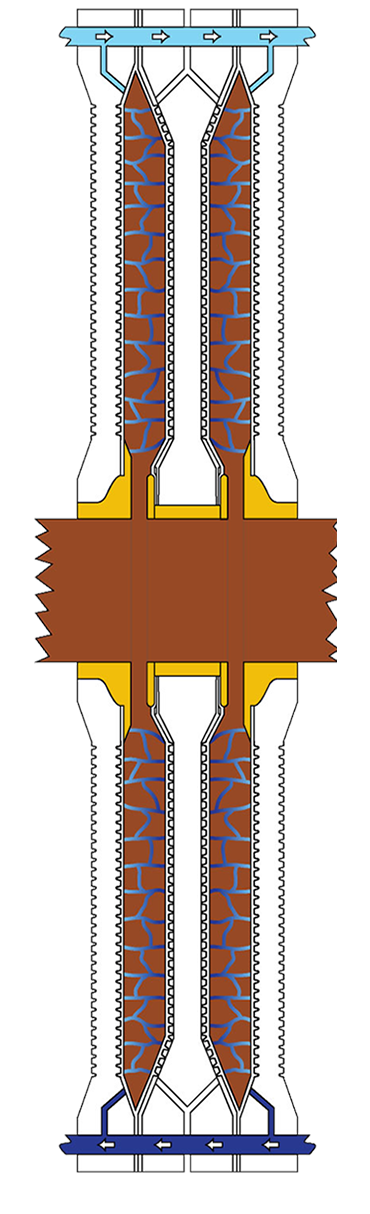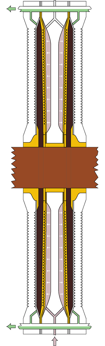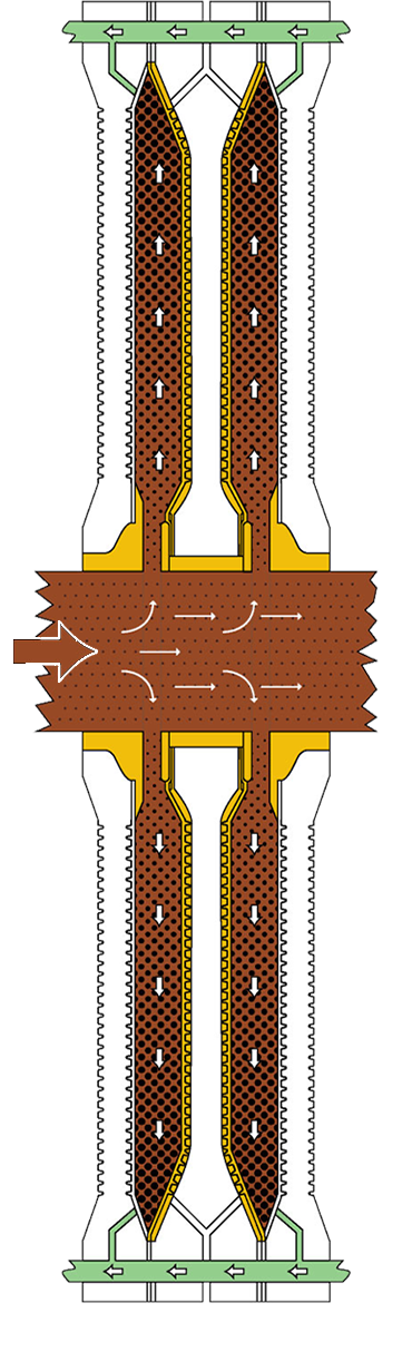 Cake washing is initiated with the fresh wash water entering from the top nozzles. The water then passes through the cake & comes out through the bottom nozzles.